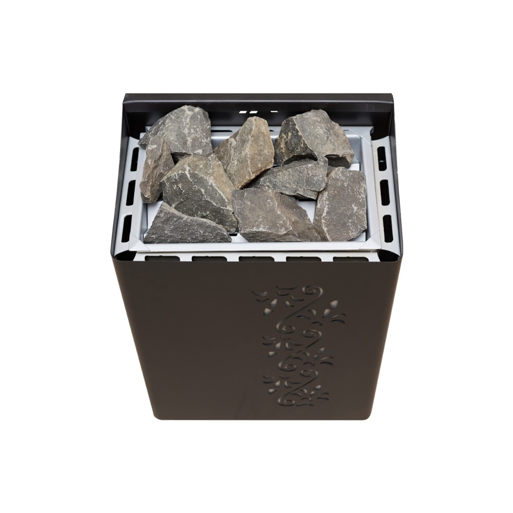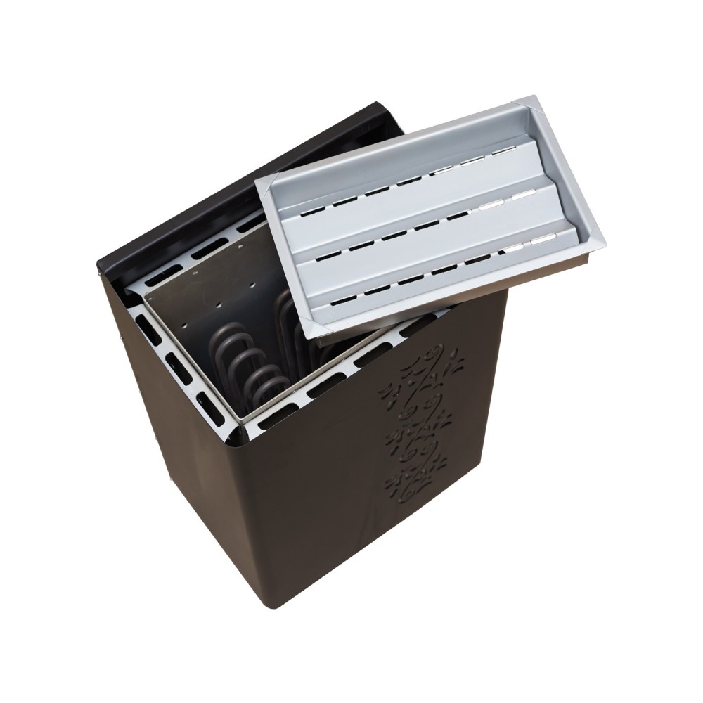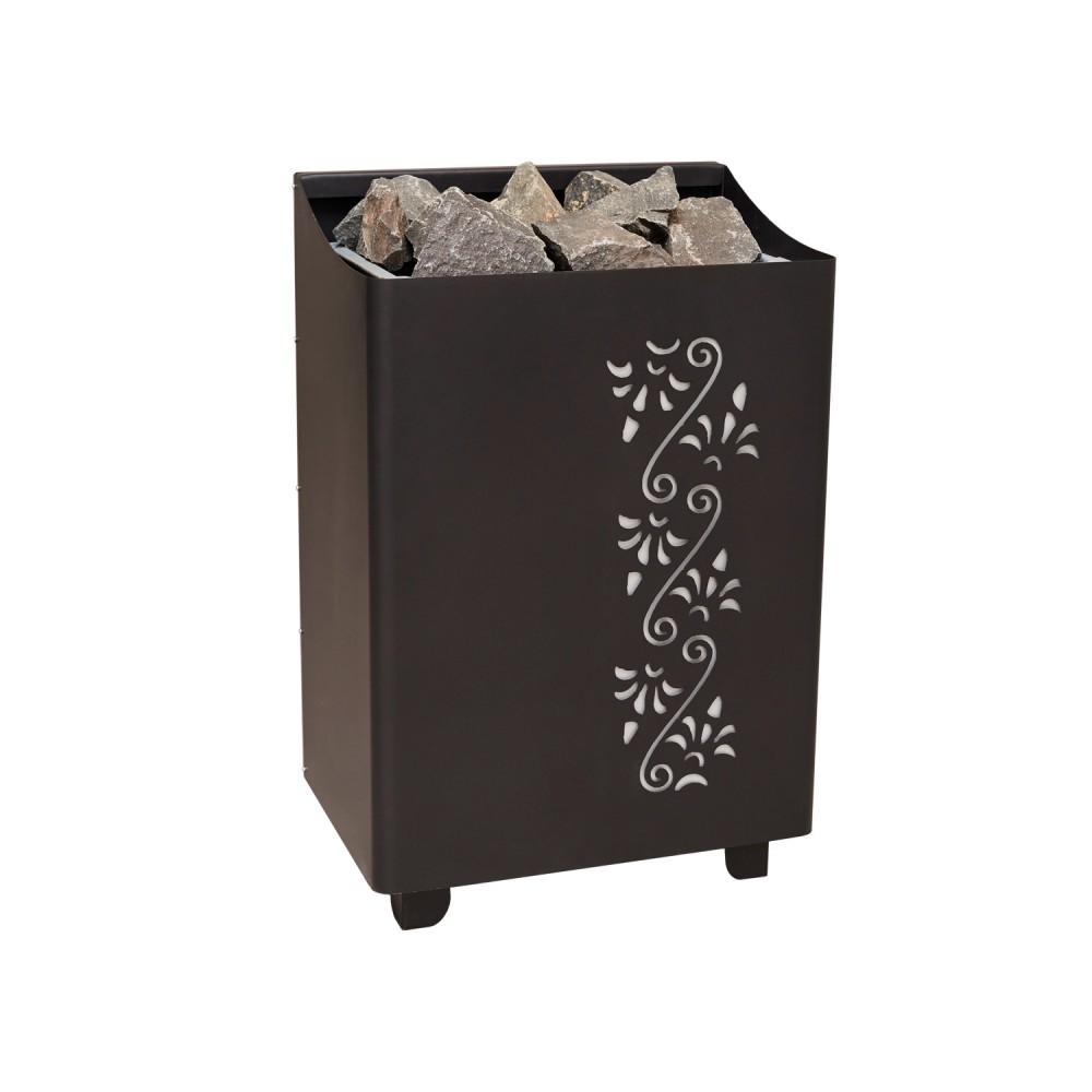 Сучасний дизайн, компактні розміри, легкий монтаж та обслуговування цього обладнання робить експлуатацію кам'янки зручною та із задоволенням. Зверху на кам'яниці є спеціальні грати - "корона", на яку є можливість розмістити спеціальне каміння для саун. "Корона" також захищає ТЕНи від механічного пошкодження від каміння та затримки невеликої кількості води. Корпус електричної кам'янки для саун "Дніпро" Лілея покритий термостійкою фарбою.